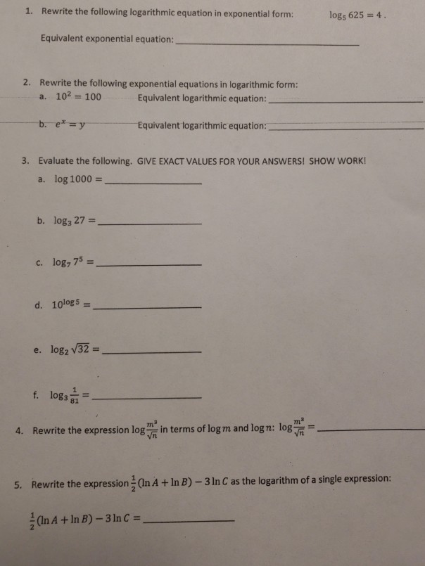 Solved 1 Rewrite The Following Logarithmic Equation In Chegg Com